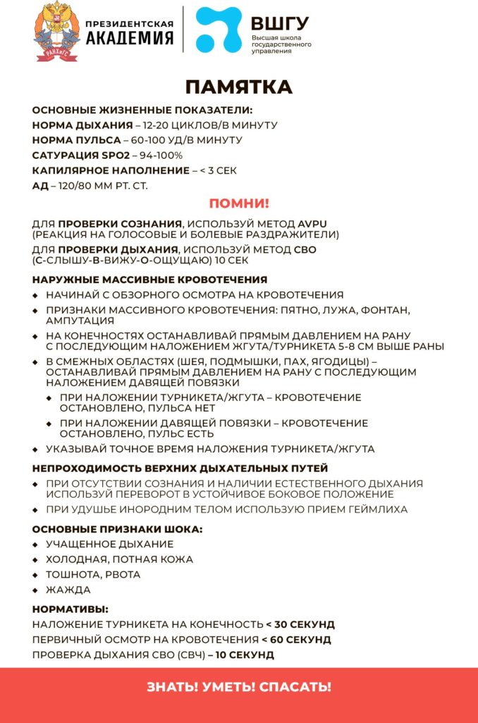 Сохраняйте себе алгоритм действий при оказании первой помощи.